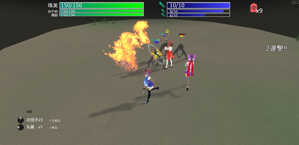 | Q.正式版はラスト以外の変更点はありますか? | A.体験版は比較的簡単なため、手応えのあるバランスになるよう予定しています。 あと歌鈴の守護殿が死にスキルになっているので別の武術に変更予定です。 (守護殿は「おはぎ」のようにアイテム化します) |